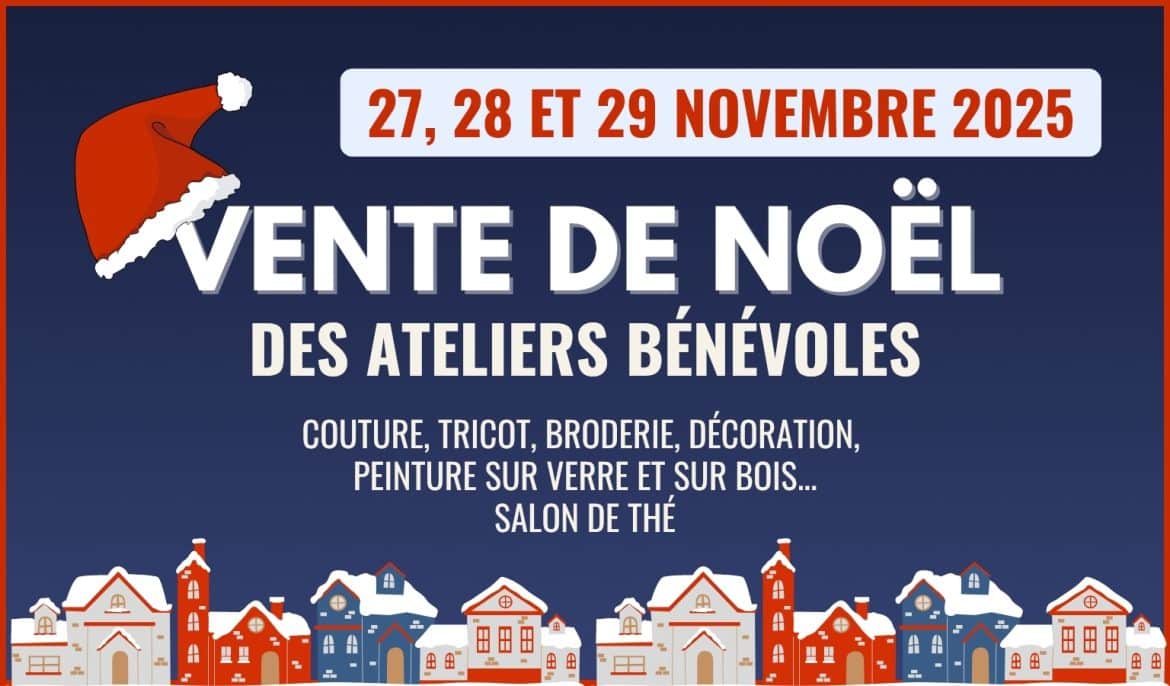 Comme chaque année, retrouvez les adhérentes des Ateliers bénévoles qui organisent la traditionnelle vente de Noël : décoration de Noël, vêtements, écharpes, objets textiles, doudous, accessoires pour la cuisine, déco sur verre et sur bois…